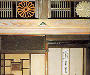 正面左に曼殊院棚と呼ばれるものがあり、十種類の寄木でつくられている。
